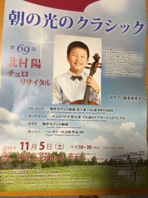 北村陽くんのチェロリサイタルに行ってきました。(ジャスミン先生)